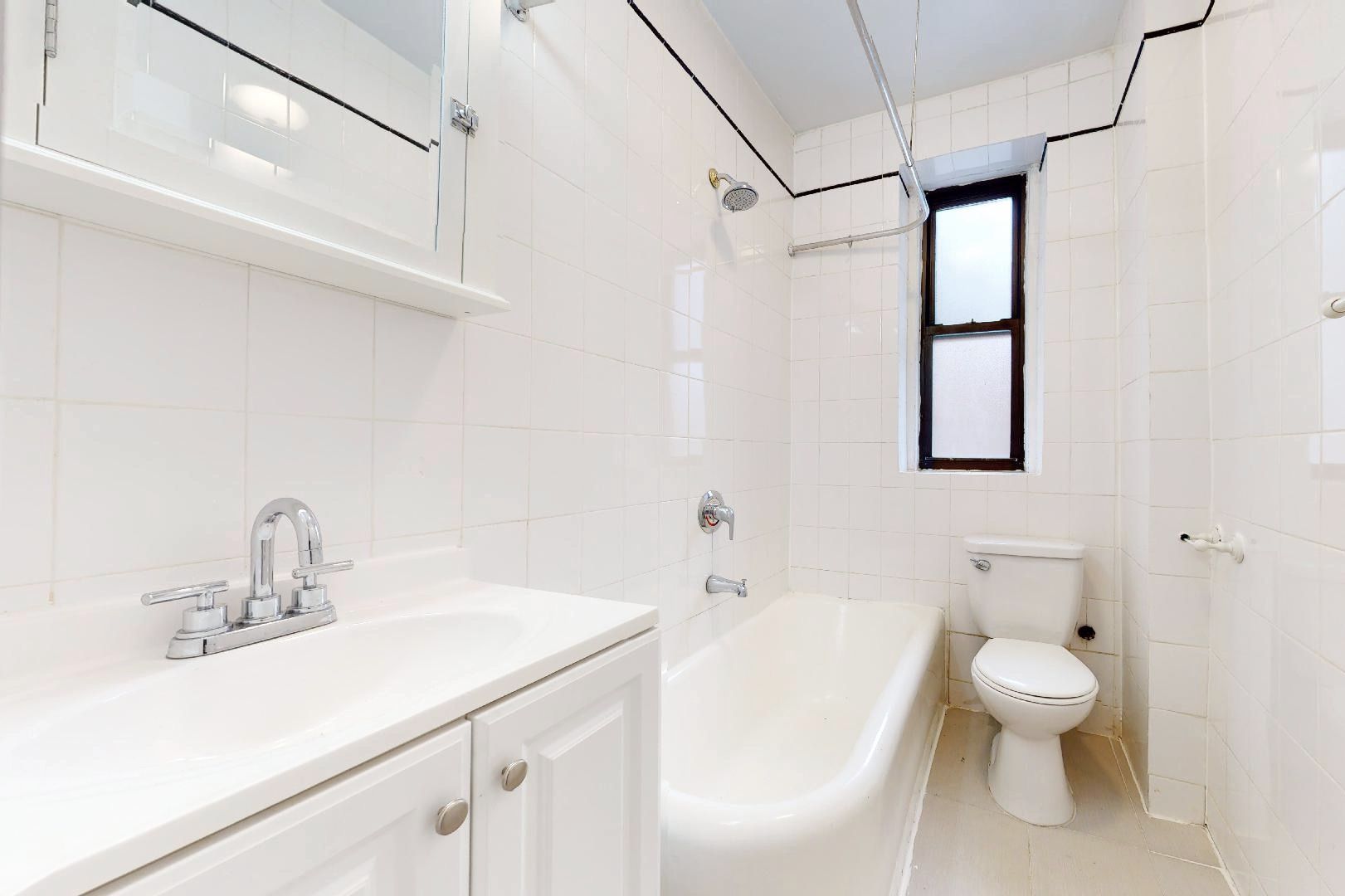- Pristine Bathroom with Subway Tiles and Elegant Fixtures