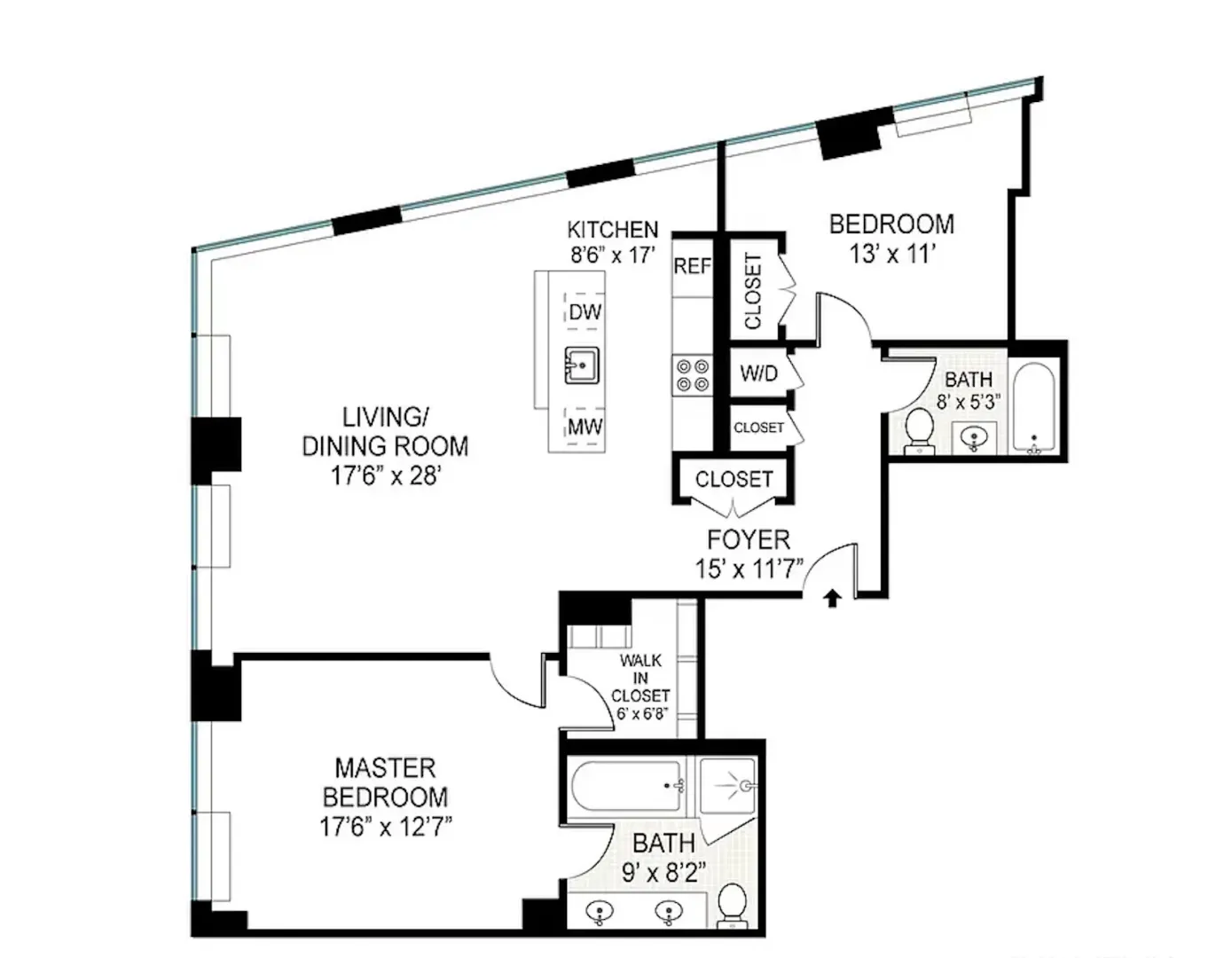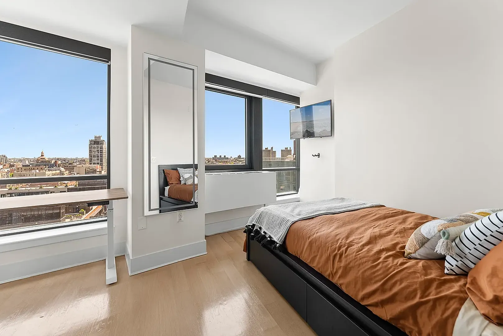 This large unit boasts floor-to-ceiling windows throughout which provide immense natural light & breathtaking views of Brooklyn, the East River, Williamsburg Bridge, and Manhattan with Eastern and Northern exposures.