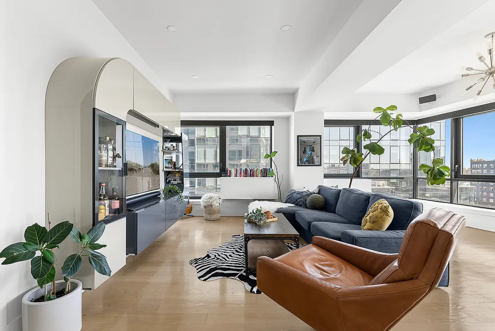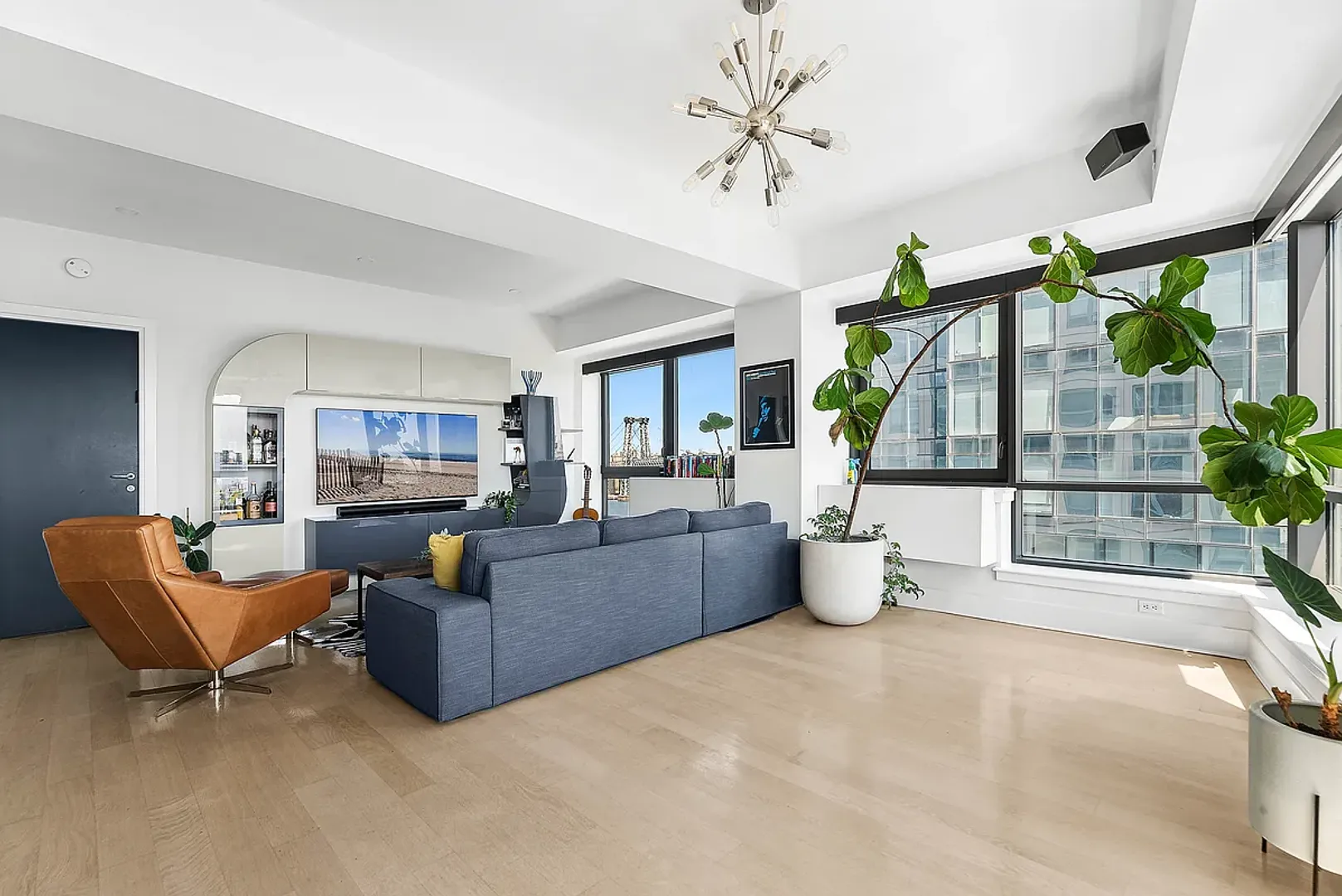 Enjoy recent upgrades such as: whitewashed oak flooring, Opal Marquette quartz kitchen countertops, Elfa custom closet systems, and an LG washer/dryer. Additionally, a custom Italian-made wall-unit from Artigian Mobili adds ample storage via falcon-wing doors & frames the 55" 4K QLED Samsung TV.